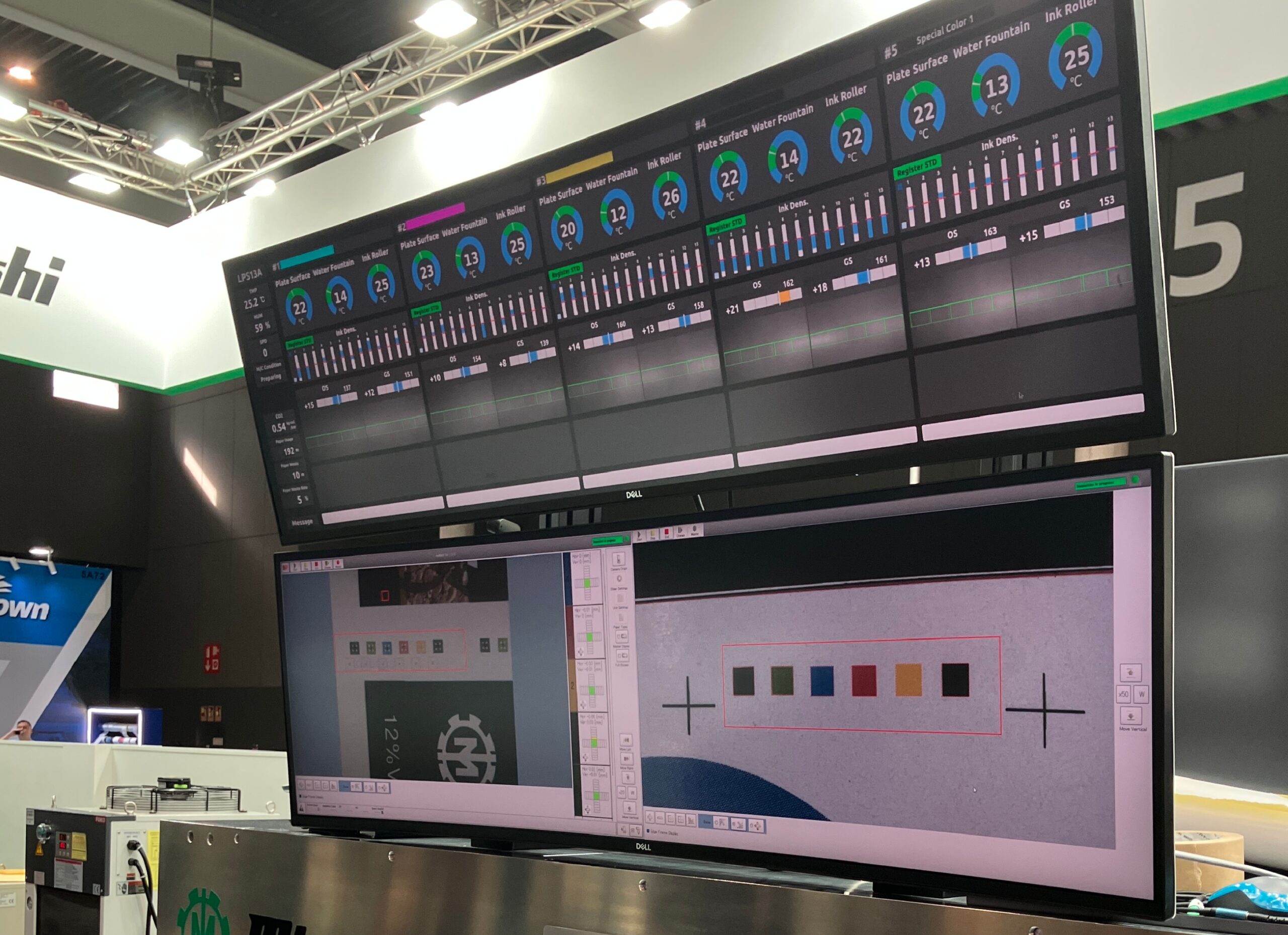 会場では、間欠UVオフセットラベル印刷機「LPS13A」に、設定操作AIアシストシステム「yaless AI Professional」を搭載し、さらに生成AIを活用したオペレーターインターフェース「yaless-Eye」を実装した最新構成の印刷機を実機展示。